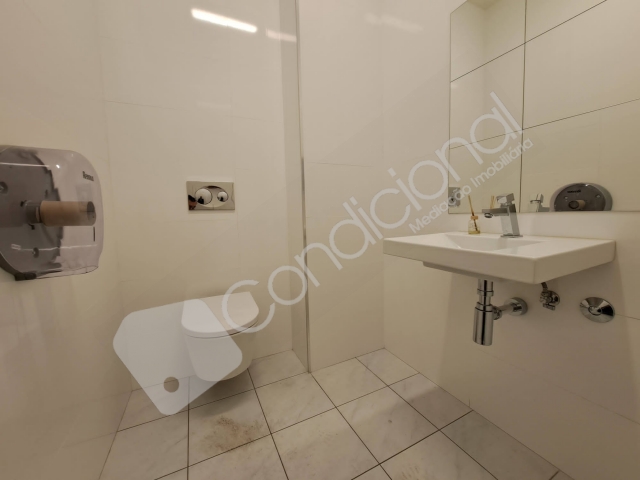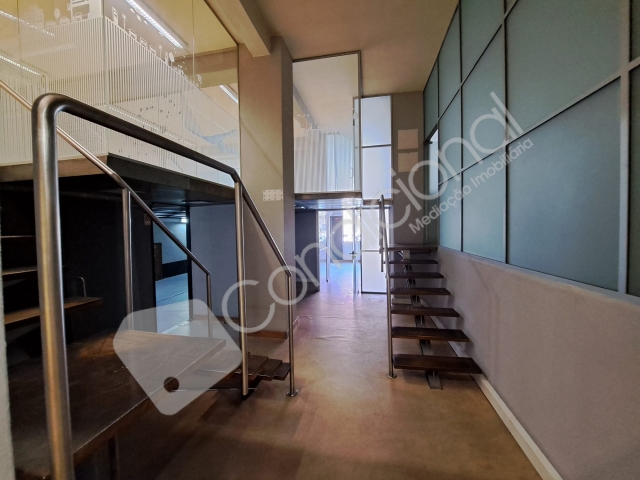 Foi durante mais de 20 anos a sede de uma empresa que necessitava de uma área administrativa muito grande. Por essa razão tem muitos gabinetes, divisórias e a mezzanine que poderão ser retirados.